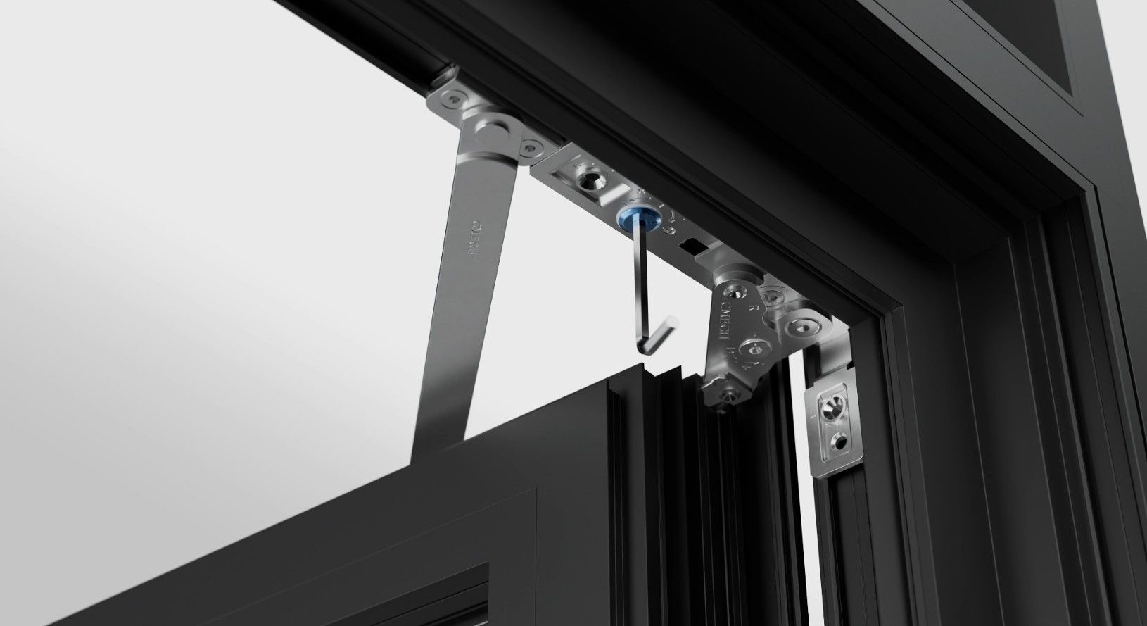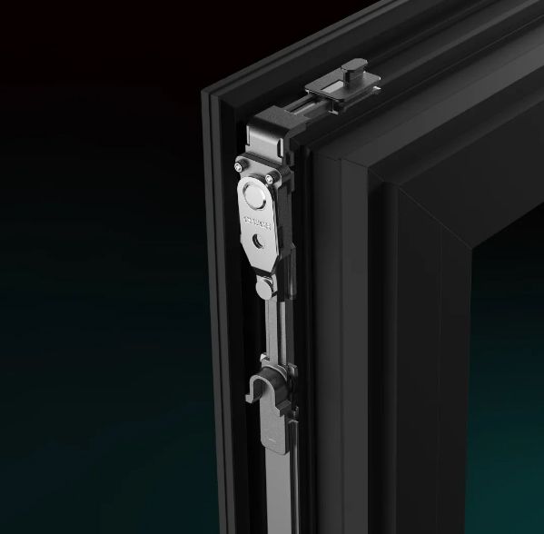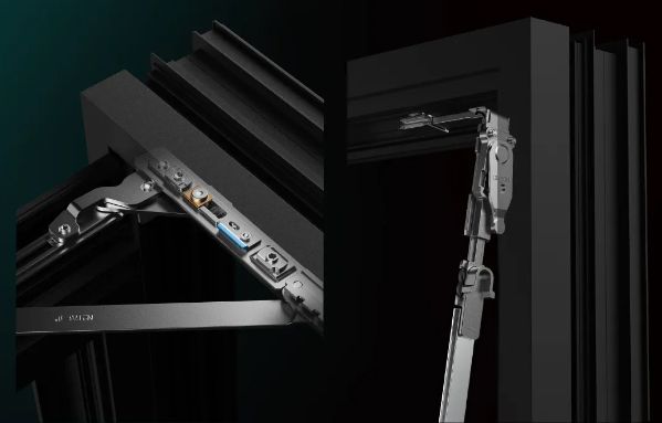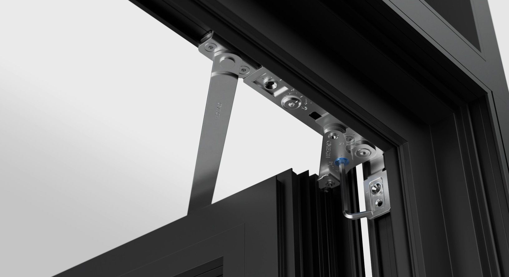 In tilt mode, the bottom hinge’s gear-type limiter is anchored with three screws into the sash—wind can’t slam it shut; only controlled strength remains.