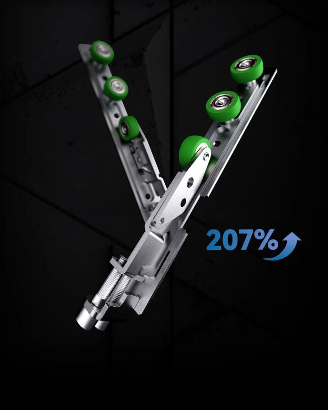 The dual-track sliding window anti-sway wheel includes built-in bearings with steel balls, ensuring smoother rolling friction. The lower pulley utilizes an automatic left-right leveling design to ensure even load distribution, preventing wear and cracking for a consistently smooth experience.